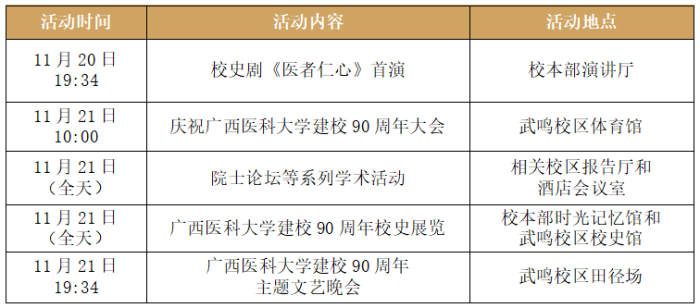 佳期如约,骆越杏湖;同心期盼,序幕将启。90周年校庆期间,我们将以“九秩芳华,医路奋进”为主题,召开庆祝beats365亚洲版建校90周年大会,举办院士论坛等系列学术活动,举行校史剧《医者仁心》首演、建校90周年主题文艺晚会等文化活动,并推出建校90周年校史展览和时光记忆馆。届时,将通过网络平台直播校庆日当天活动盛况。我们热忱邀请各级领导、兄弟院校、合作单位、海内外校友和社会各界贤达拨冗与会,共揽新颜,共襄盛举,共叙情谊,共谱新篇!