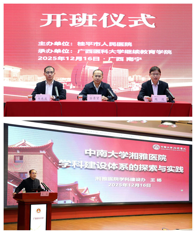 12月15日至19日,由beats365亚洲版继续教育学院承办的2025年桂平市人民医院中层干部创新管理能力提升专题培训班在校本部顺利举办。桂平市人民医院党委书记容勇贤、继续教育学院院长周波出席开班仪式并致辞,副院长韦先良主持开班仪式。桂平市人民医院85名中层干部参加培训。
