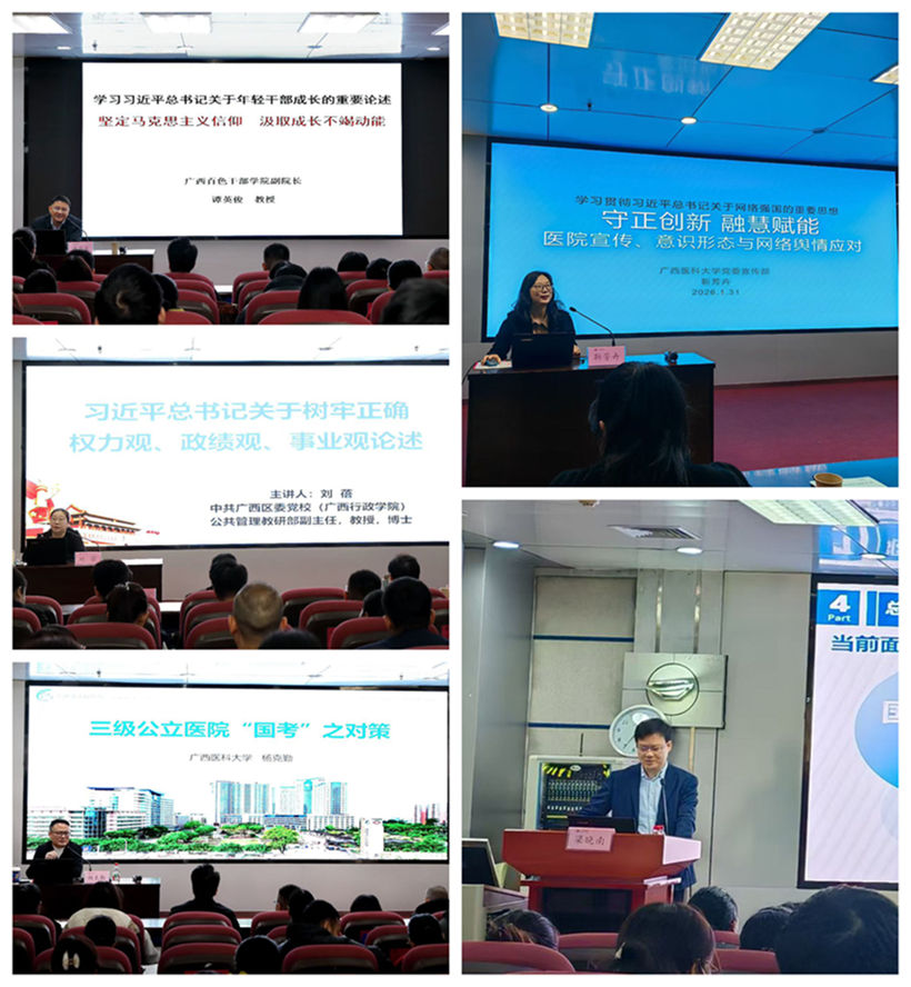 本次培训特邀自治区党委党校、广西百色干部学院专家教授作专题辅导,深度阐释年轻干部成长之道。同时,我校及附属医院的资深管理骨干围绕公立医院高质量发展,医疗质量管理,医院宣传、意识形态与网络舆情应对等热点,以真实案例拆解医疗管理难题,分享“实战干货”。培训期间,参训学员走进青秀山廉政主题文化园接受精神洗礼,赴南宁市工人文化馆进行剧场体验,进一步筑牢信仰根基、涵养清风正气。学员们围绕当前县域公立医院发展难题进行专题研讨、互鉴互学,在交流中拓宽工作思路。结业仪式上,学员代表分享学习感悟,纷纷表示将所学所思所悟化作奋进动力,以更加扎实的能力素质服务“健康合浦”建设。